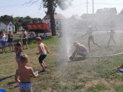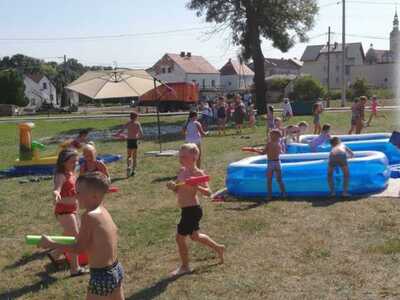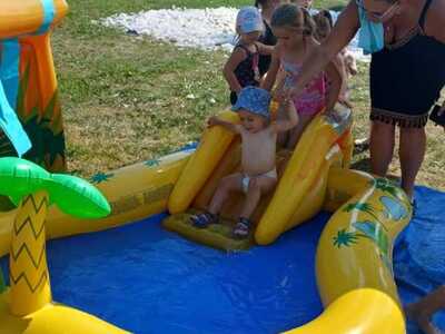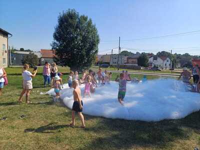 Było kolorowo, grawnie i mokro. Dzieci mogły zażyć kąpieli w specjalnie przygotowanych basenach, a także pobawić się w pianie specjalnie dla nich przygotowanej przez tutejszą OSP.