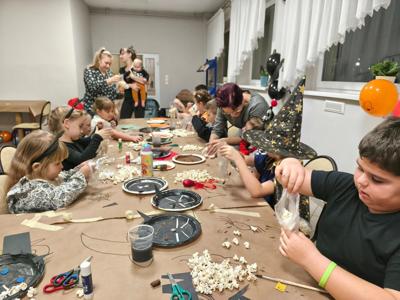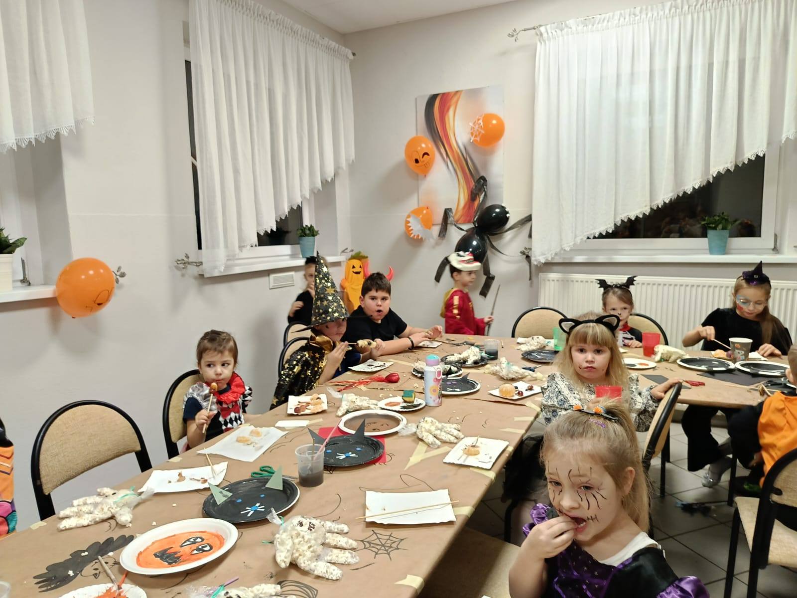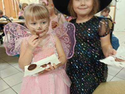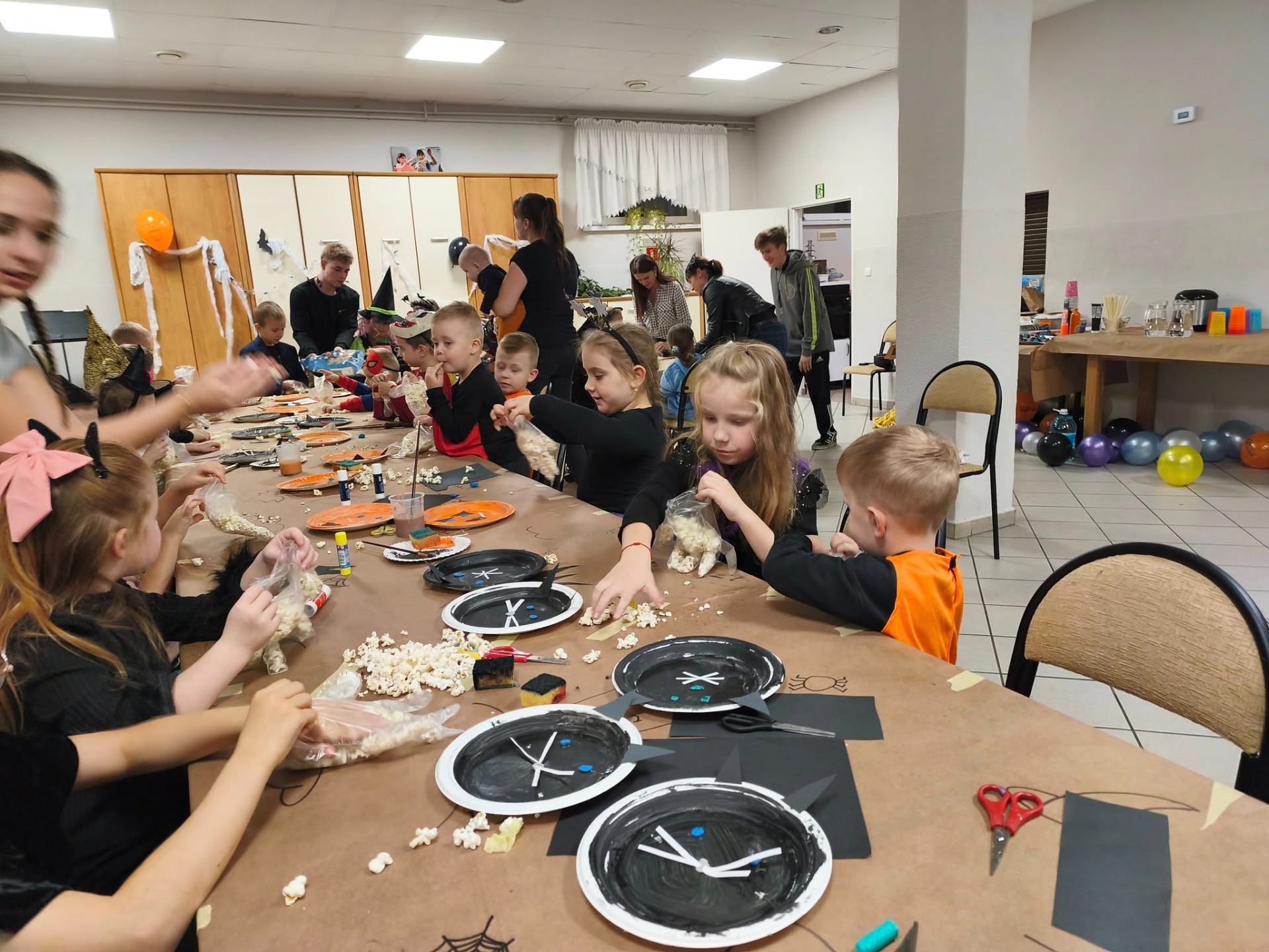 Program wydarzenia obejmował magiczne opowieści, gry i zabawy, taniec i bal przebierańców oraz czekoladową niespodziankę. Dzieci wysłuchały opowiadania o Franklinie, wykonały czarne koty oraz dynie, a także potworki z popcornu. Było wesoło, kolorowo i zabawnie. Dziękujemy za tak liczny udział i zapraszamy na kolejne wydarzenia w GBP Cisek.