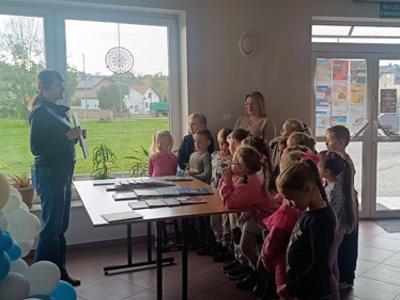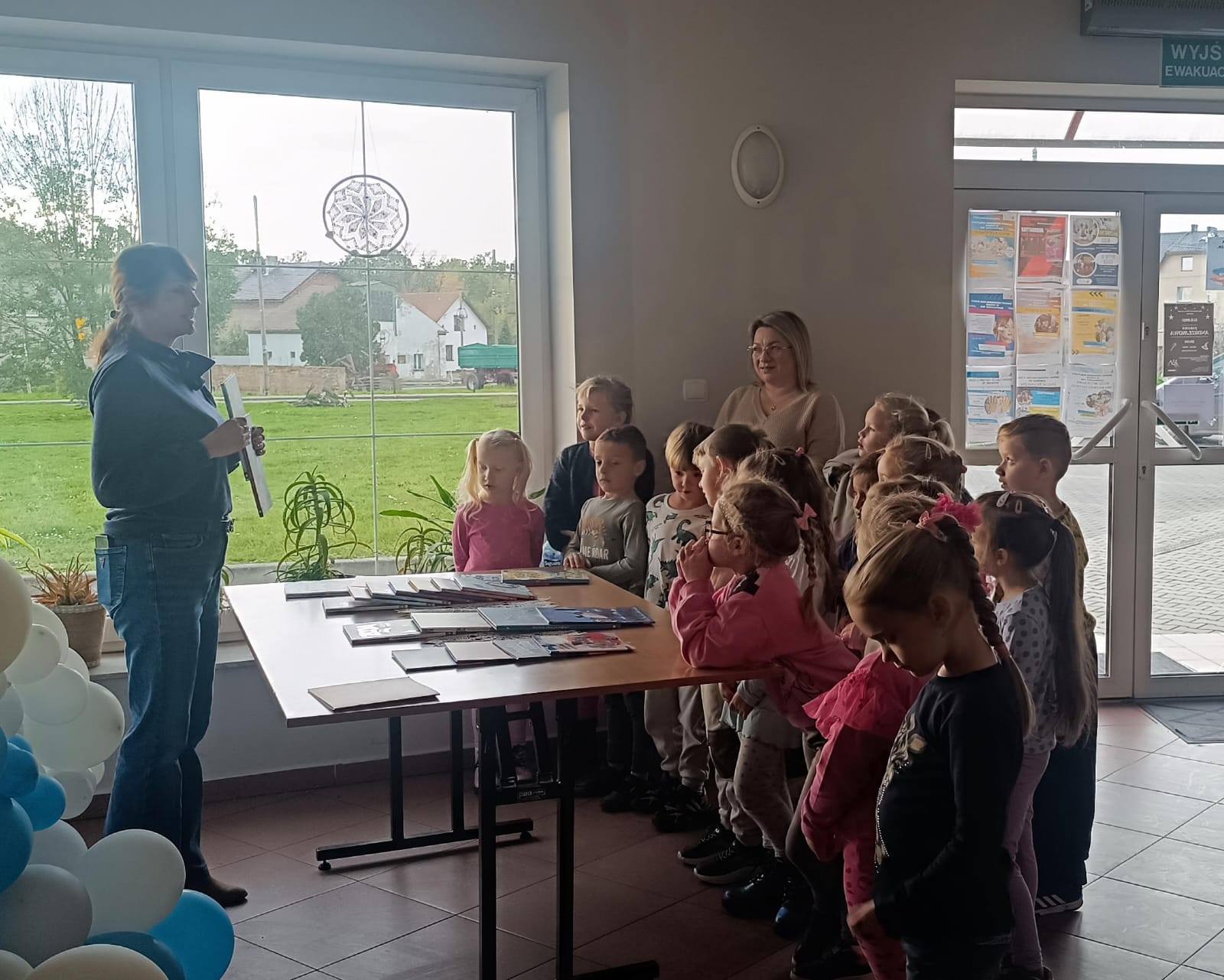 30.10.2025r. Filię Biblioteczną w Łanach odwiedziła najstarsza grupa przedszkolaków z miejscowego przedszkola. Zaprezentowano najnowszą kolekcję książeczek dla najmłodszych i przeczytaliśmy opowiadanie o Wandzie Pandzie. Podczas warsztatów dzieci wykonały jesienne dynie oraz kolorowego jeżyka. Czas umilił nam występ praktykantów, a przedszkolaki dały się ponieść w rytm dziecięcej muzyki. Dziękujemy p. Halinie za przybycie i zapraszamy na kolejne spotkania z biblioteką.